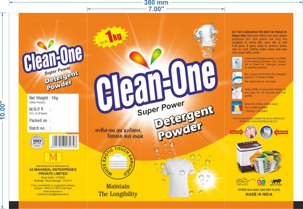 Cleanone Detergent Powder is a reliable detergent brand by 24Mahabal Enterprises Pvt. Ltd., designed to meet the daily cleaning needs of every Indian household. Our powerful formula removes tough stains while keeping clothes soft and fresh, offering both performance and care at an affordable price. With a commitment to quality and customer trust, Clean One is becoming a preferred choice across the country. Because we believe — “क्लीन वन का इस्तमाल, विश्वास भरा कदम“