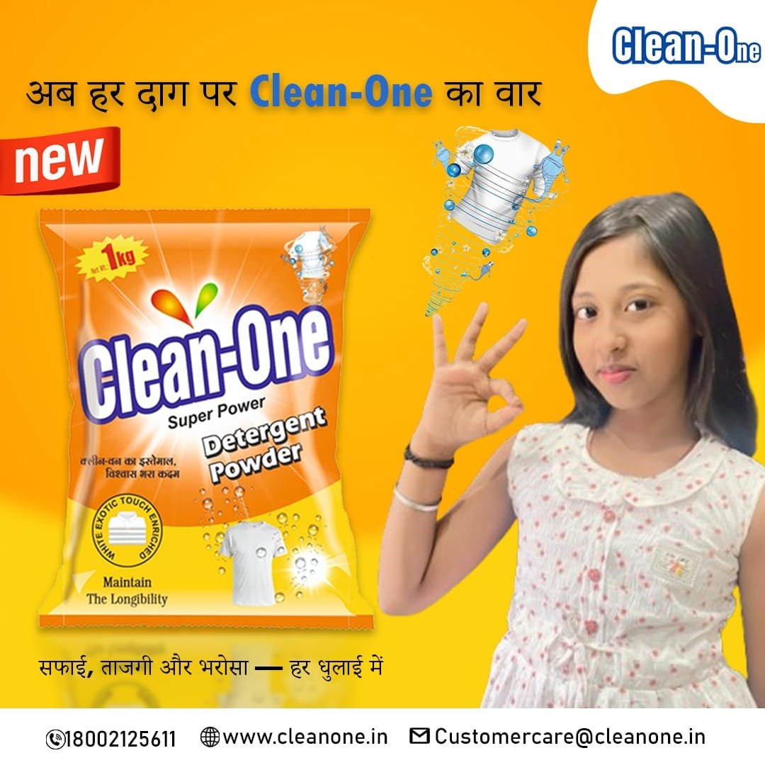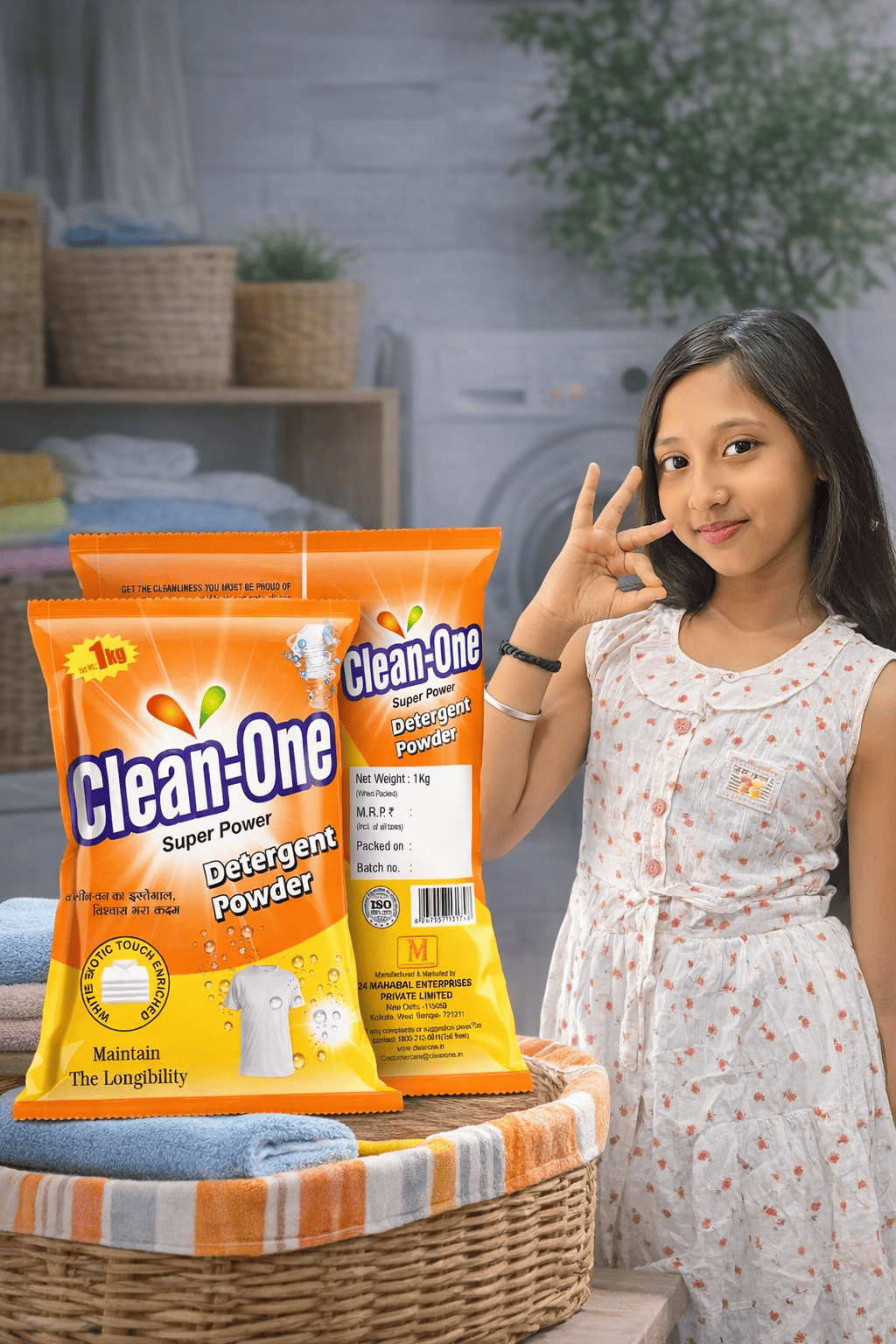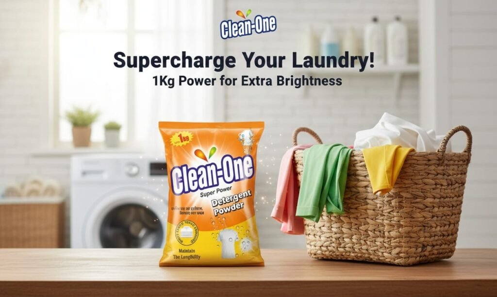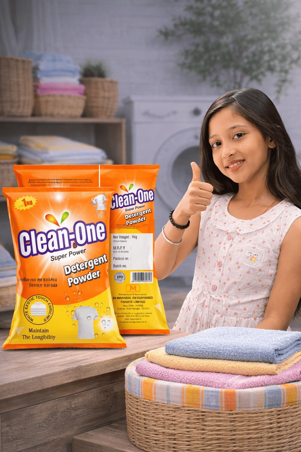 Clean-One Detergent Powder removes tough stains like dirt, oil, and grease while keeping your clothes fresh, bright, and long-lasting after every wash.